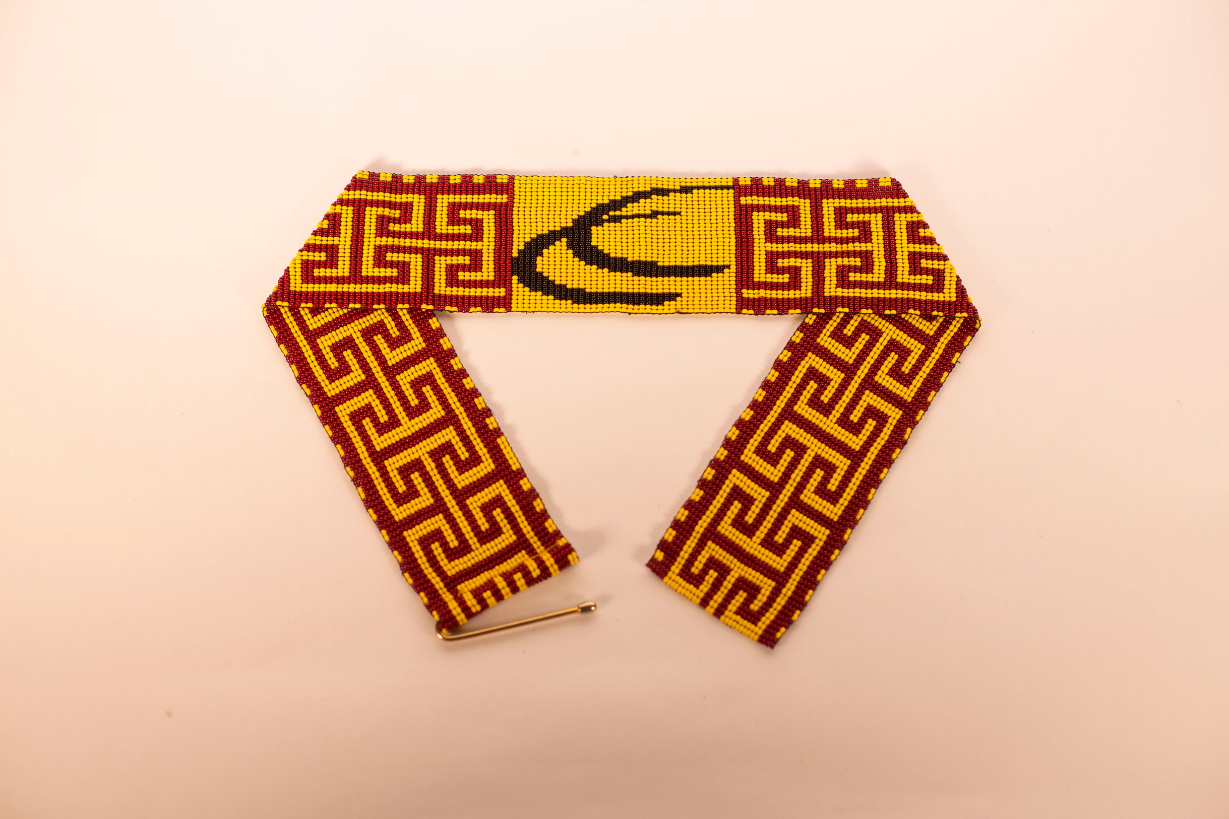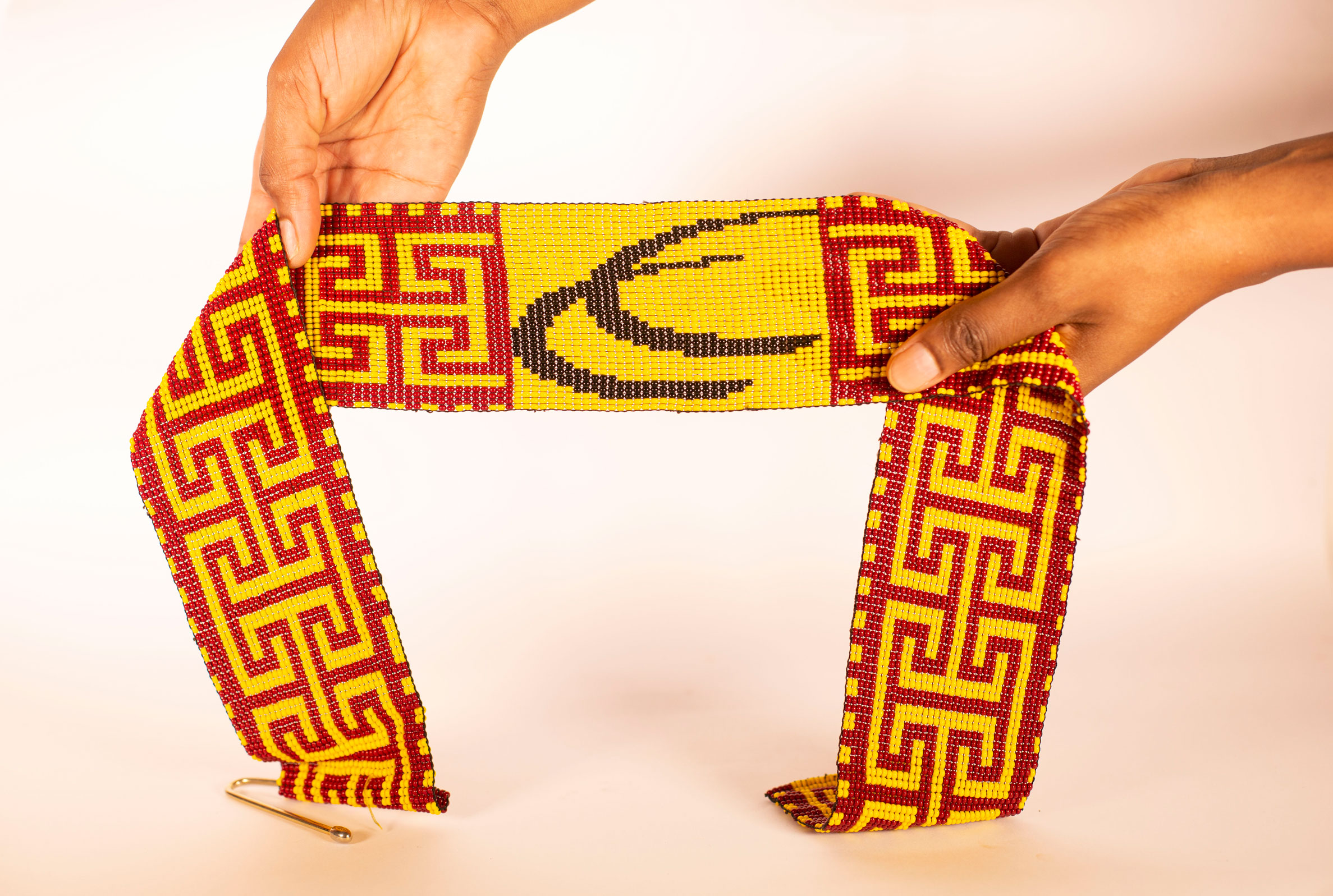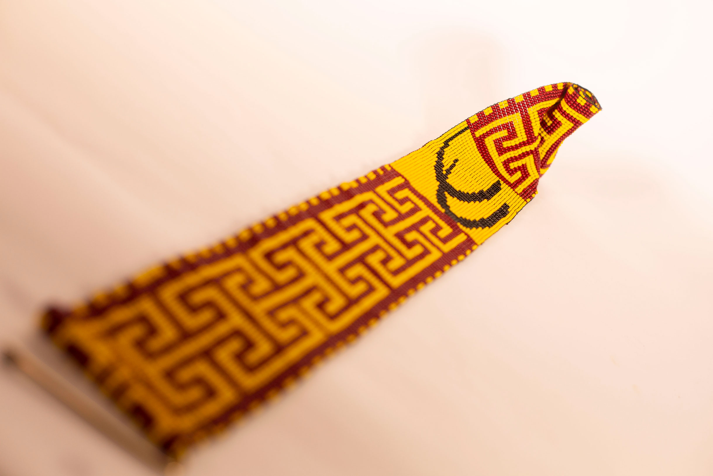 Cinturón elaborado en chaquira checa por los indígenas, Ember Wounaan del Choco, de color amarillo que representa para ellos fuente de inspiración, la alegría, el sol.