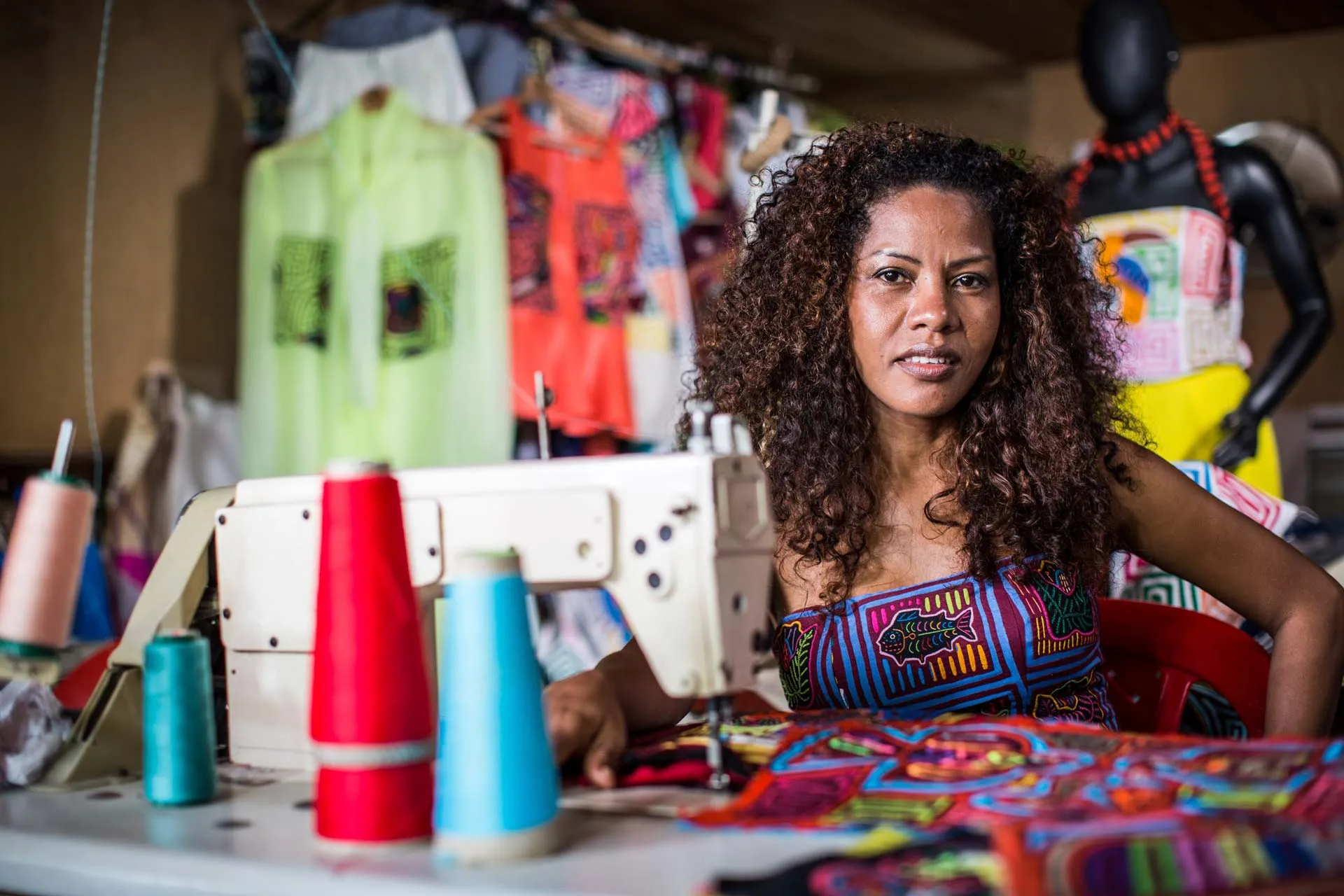 Además de diseñar y comercializar prendas de vestir, tenemos un objetivo social, que consiste en preparar personas en situación de desplazamiento forzado y brindarles oportunidad laboral que se traduzca en mejorar su entorno familiar y su nivel de vida. De esa forma contamos con 10 personas laborando en el taller y más de 20 con empleos temporales, entre ellos, la comunidad indígena Gunadule O Kunas de Unguía Chocó, quienes se encargan de fabricar las molas que utilizamos en las prendas y accesorios, un grupo de Mujeres Afro de la Tercera Edad que se encargan de hacer hermosos tejidos con los recortes de tela sobrantes, minimizando así el impacto que genera nuestra producción siendo más amables con nuestro ambiente además de construir tejido social.